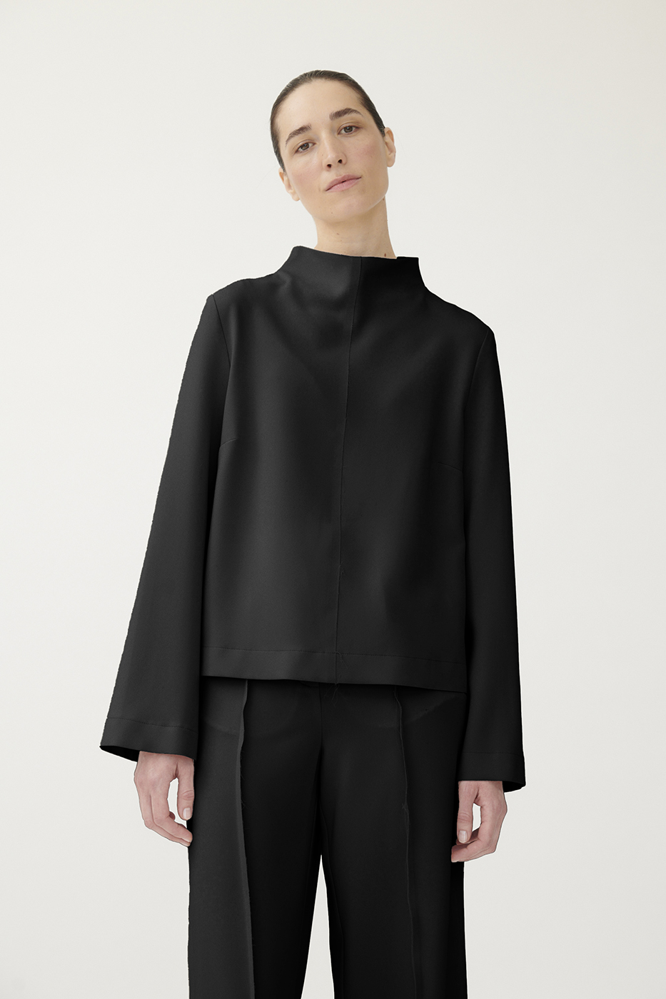 Minimalistisches Top aus japanischem Triacetat mit offenkantiger Verarbeitung.
