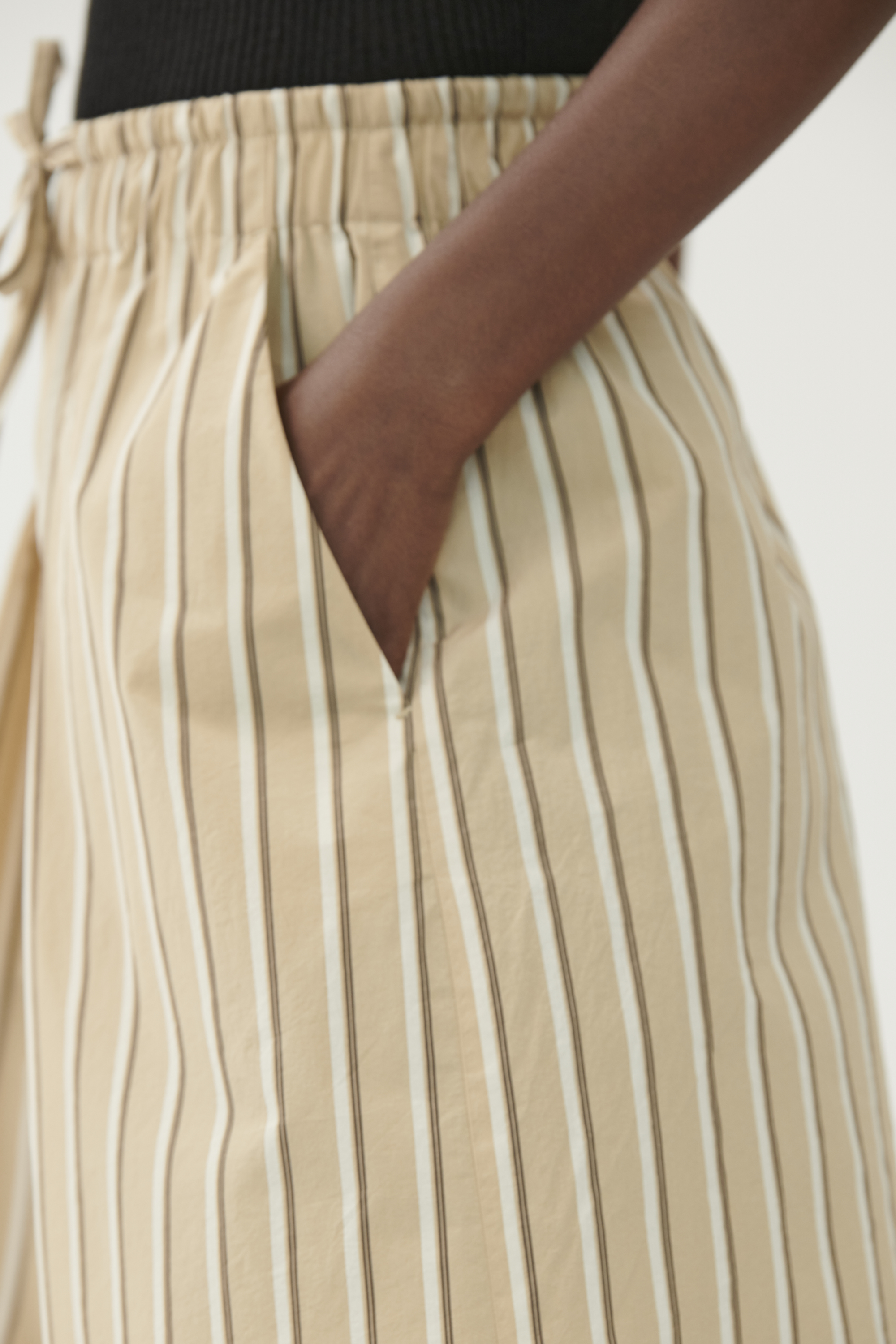 Lässige Shorts mit weitem Bein aus gestreiftem Popelin