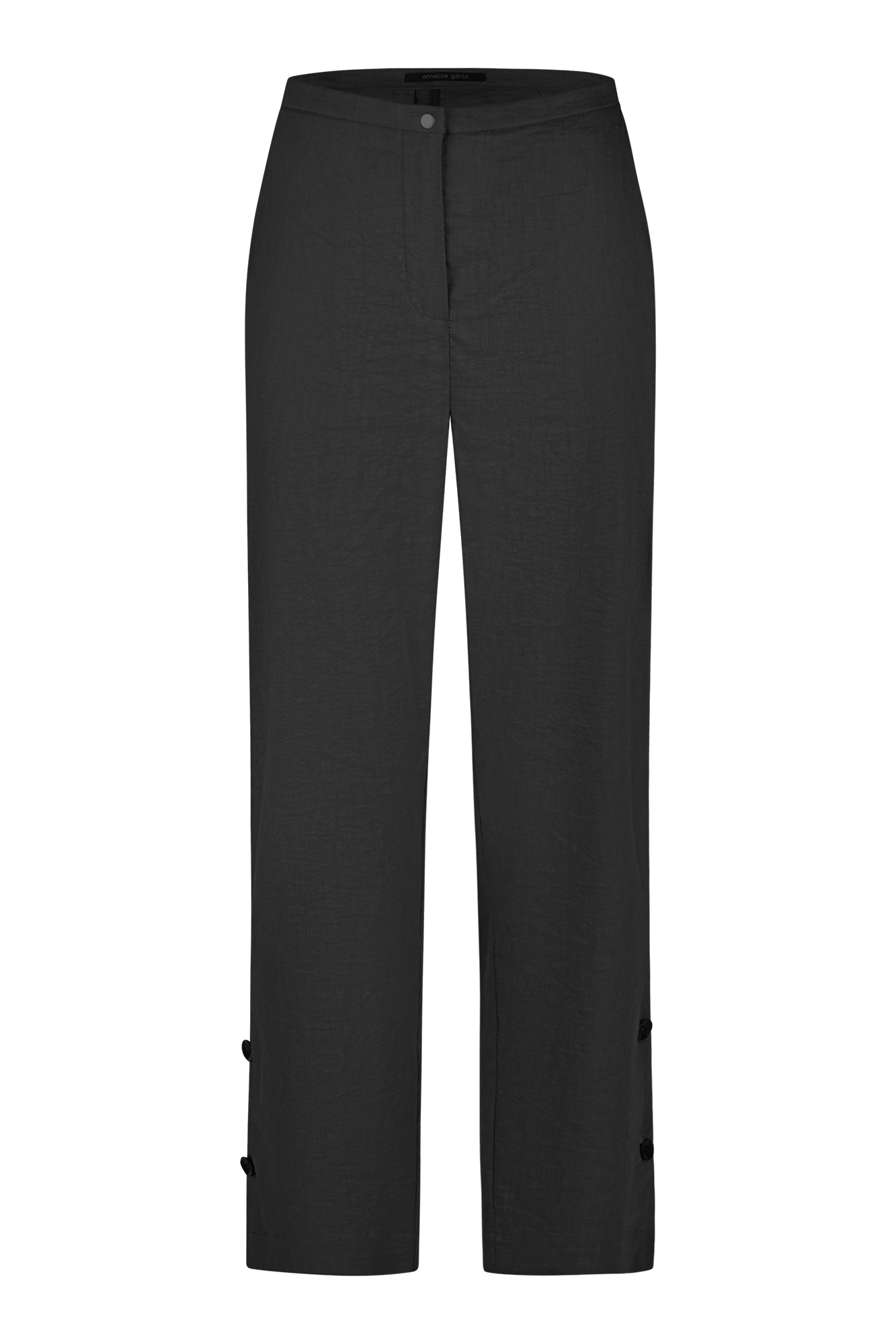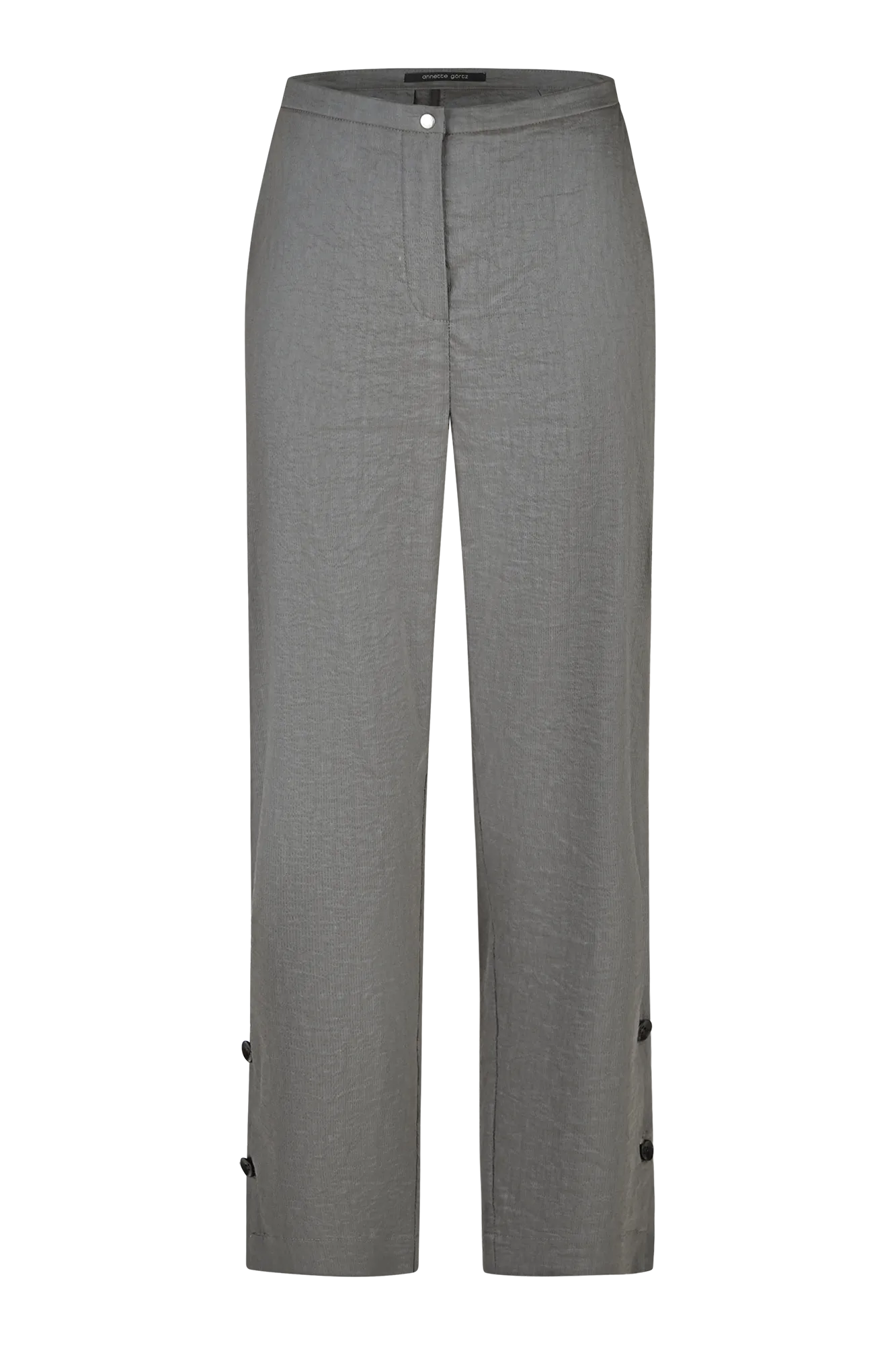 Hose mit geschlitztem Saum und Knopfdetails.