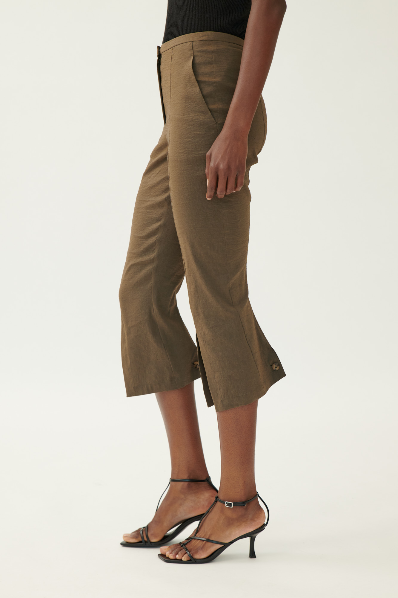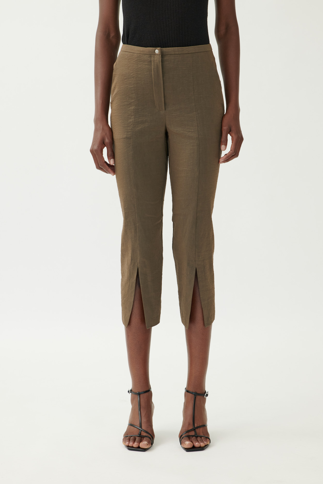 Schmale Caprihose mit geformtem Bein und markanten Schlitzen.
