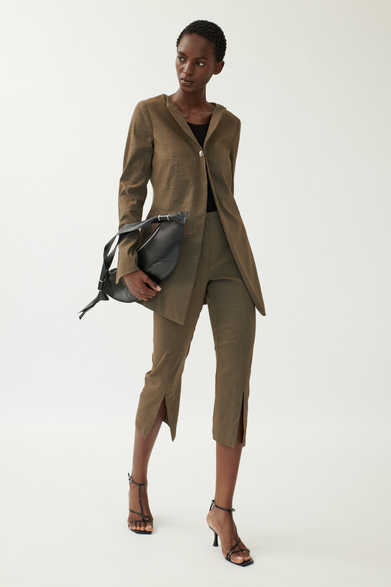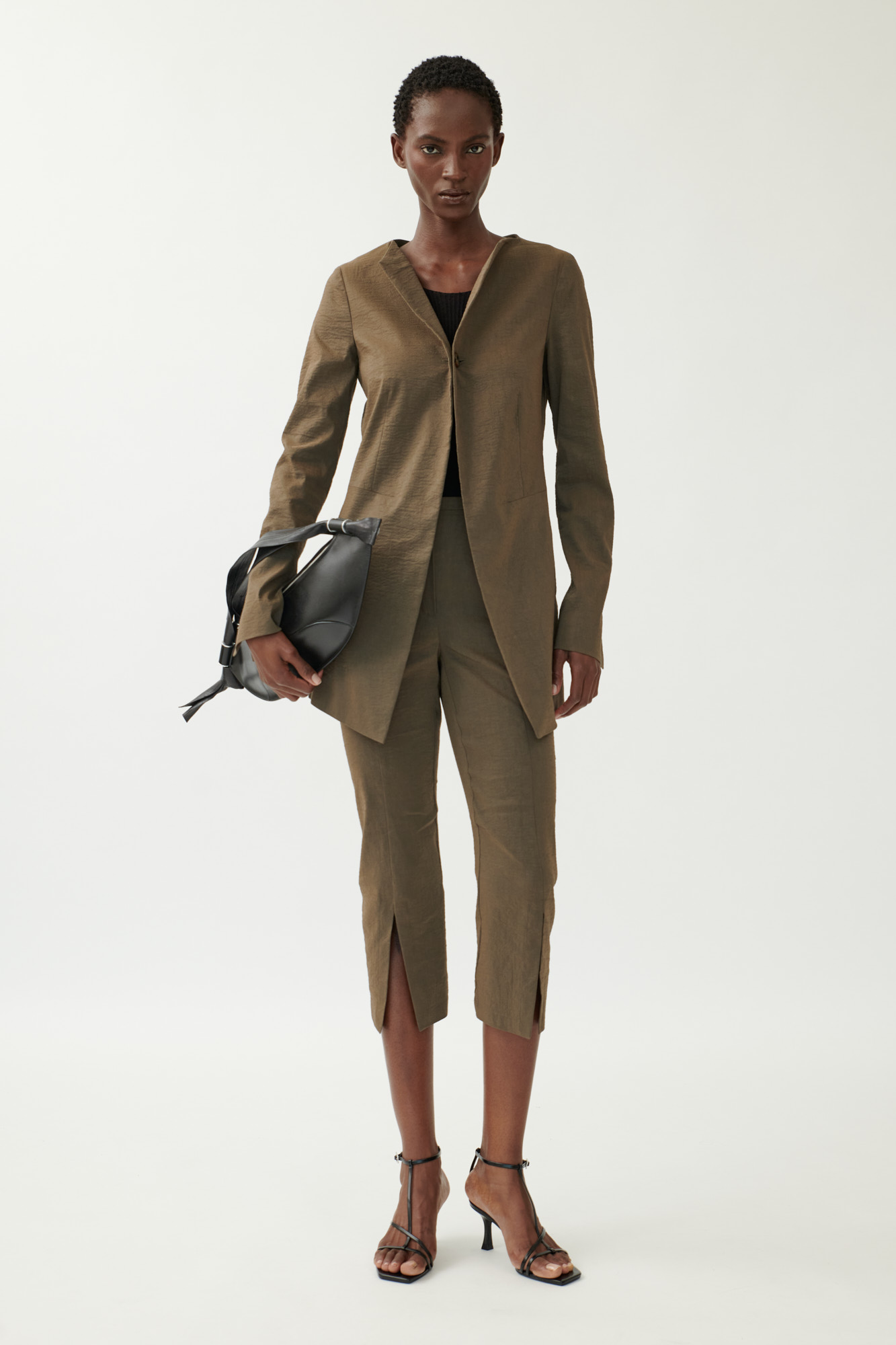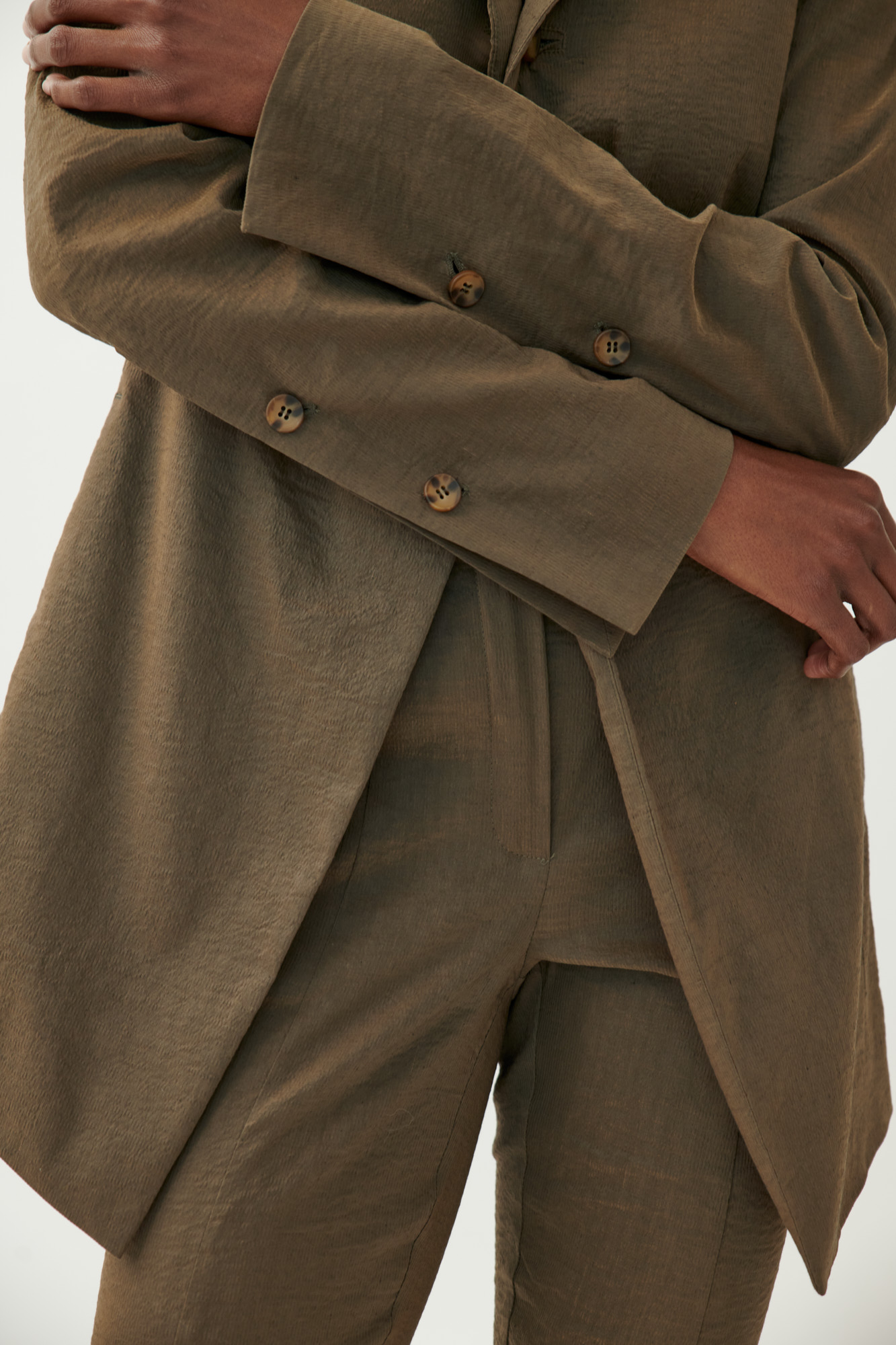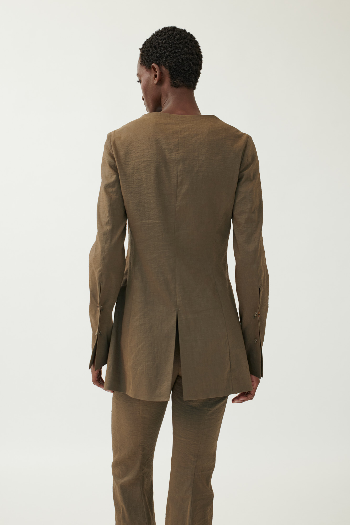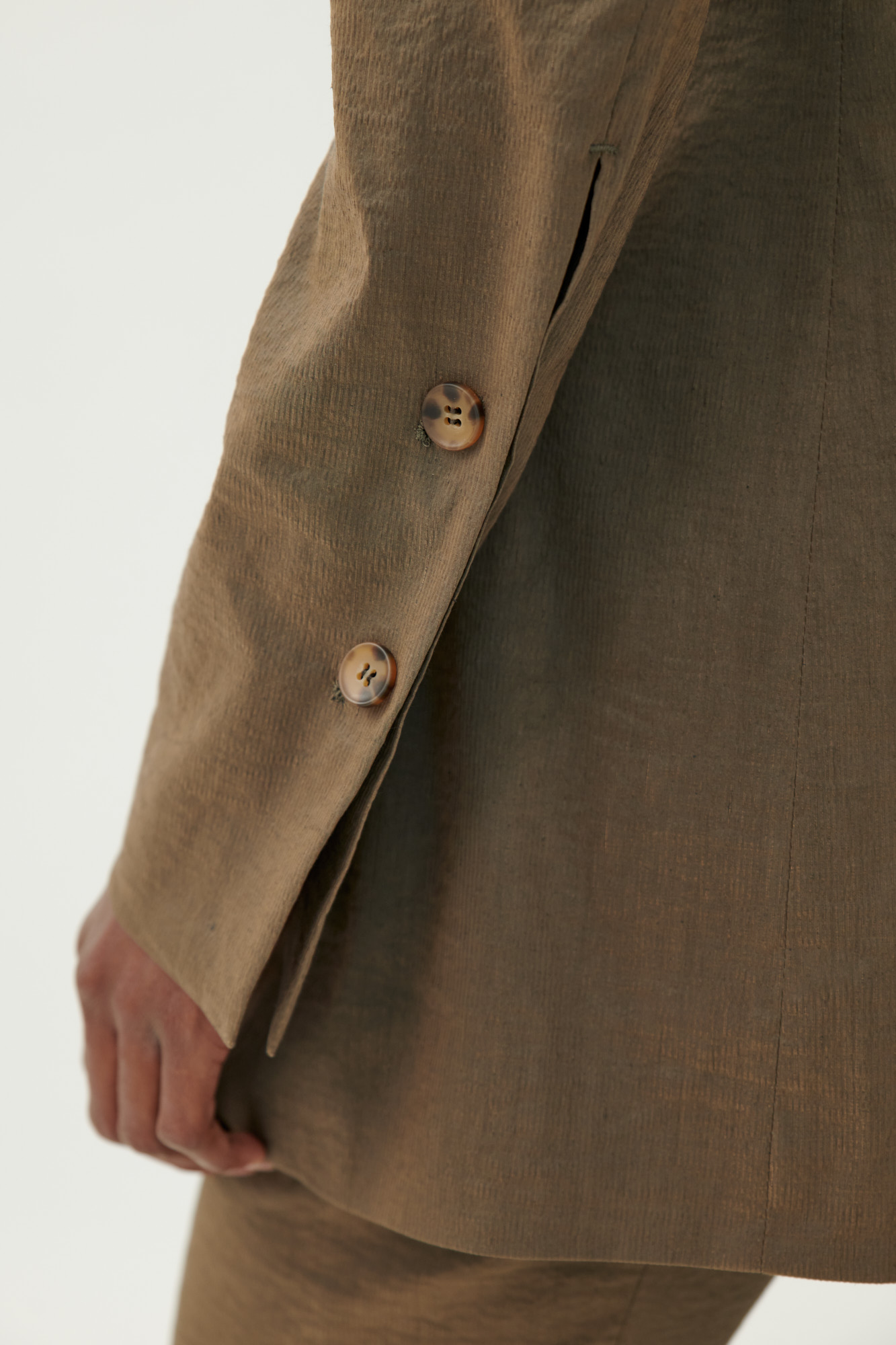 Blazer aus sportlichem Leinenmaterial mit Changeant-Effekt und Verschlussdetail.