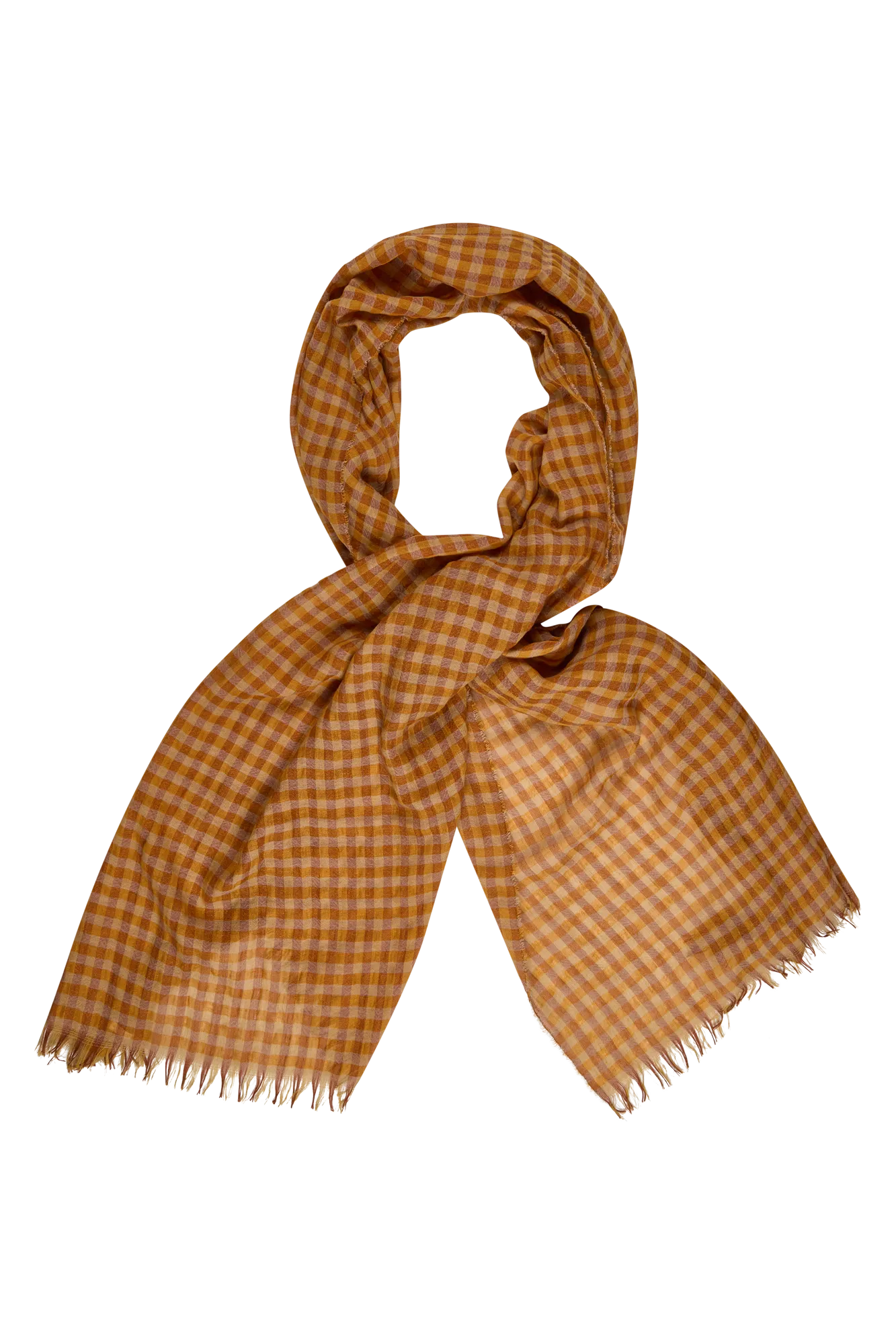 Leichter Schal aus einer hochwertigen Kombination von Schurwolle und Leinen. Das gewebte Karomuster und die strukturierte Oberfläche mit gewaschener Optik verleihen dem Accessoire eine lässige Eleganz – perfekt für Übergangszeiten.