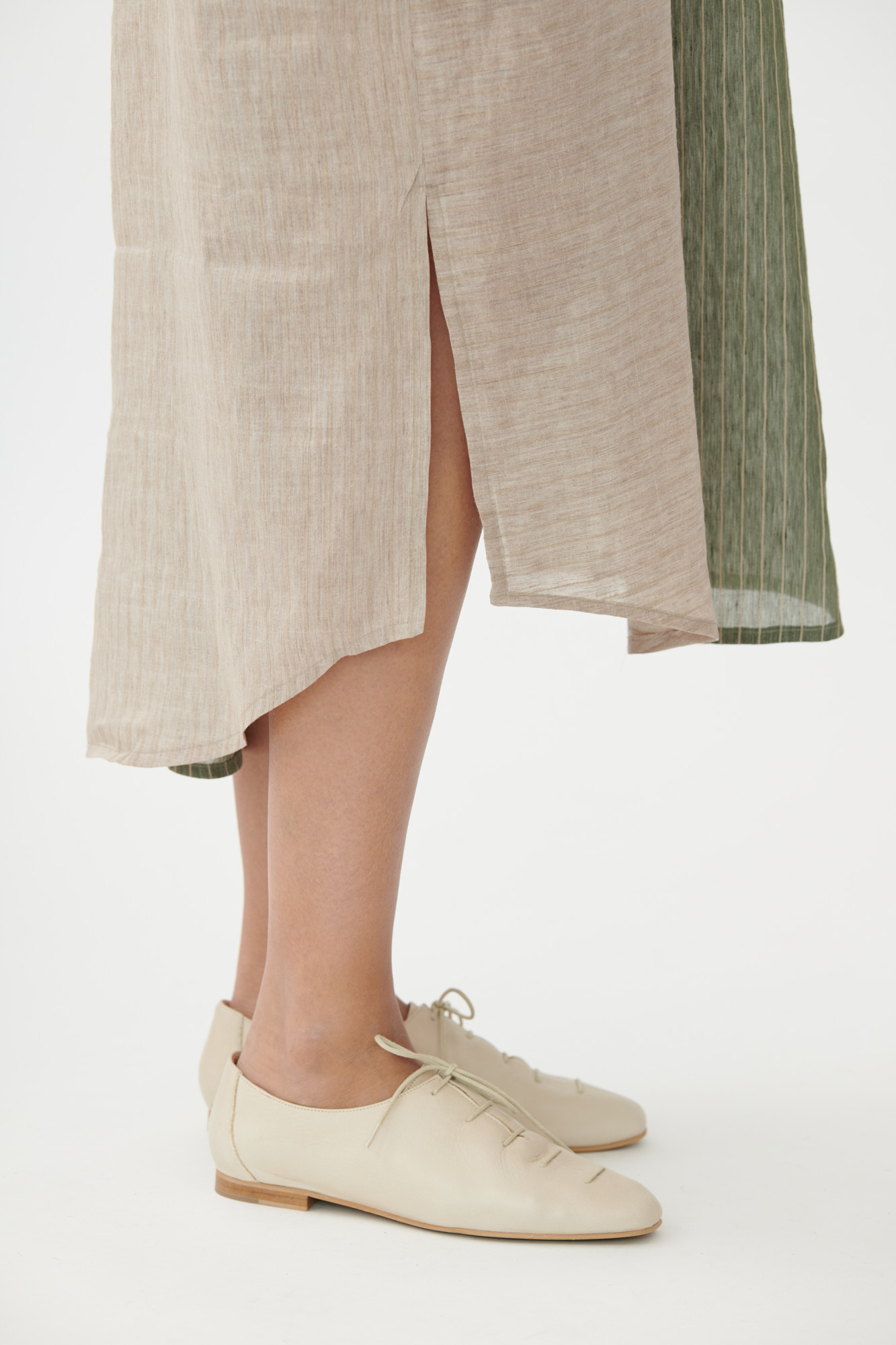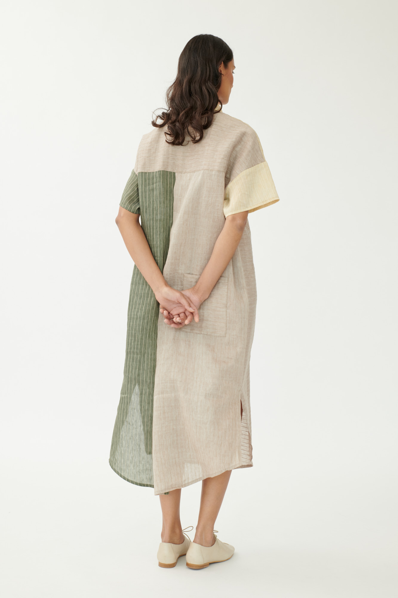 Patchwork-Kleid aus gestreiftem Leinen-Mix
