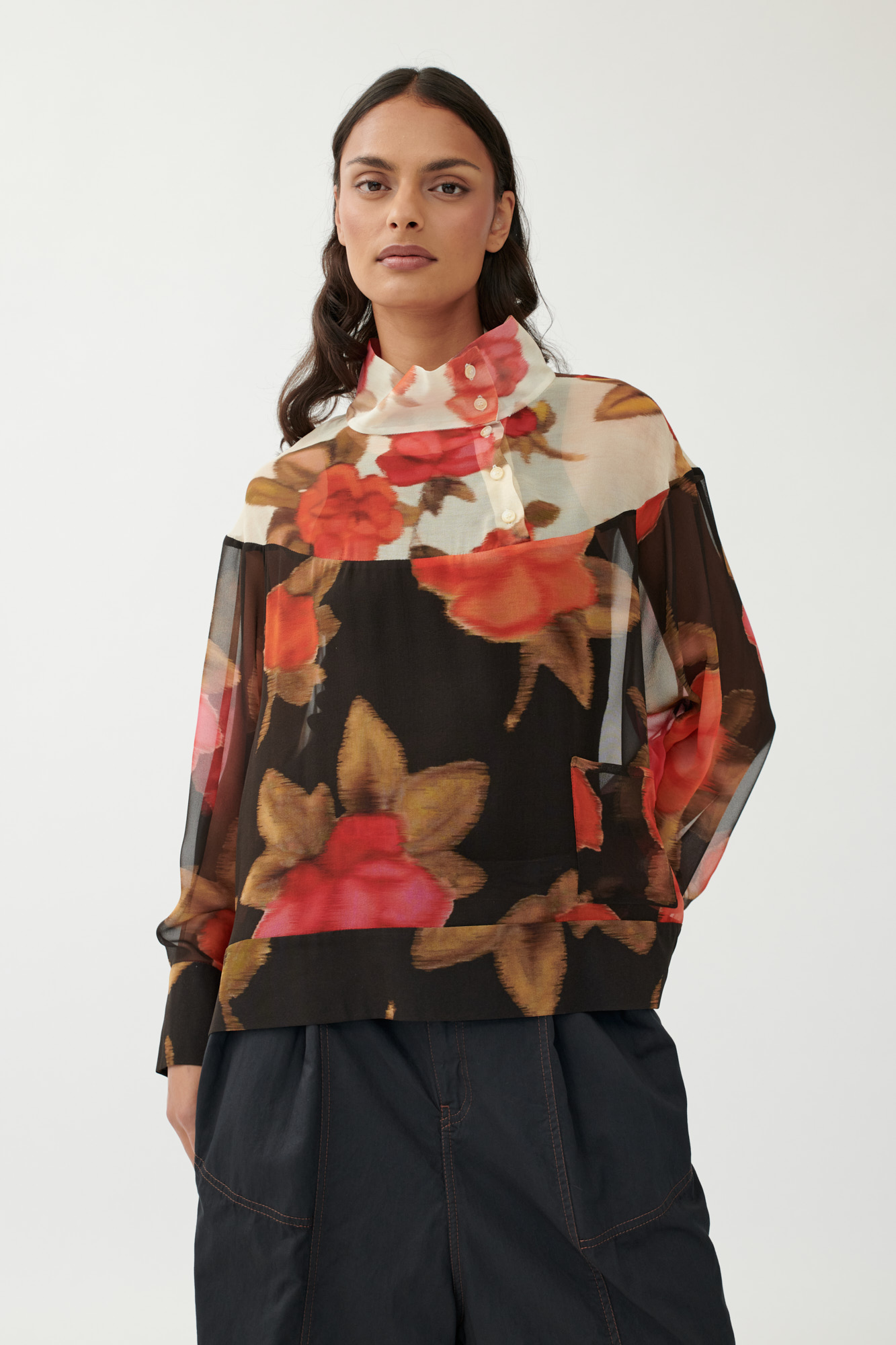 • Leichte Crêpe-Seide mit floralem Alloverprint