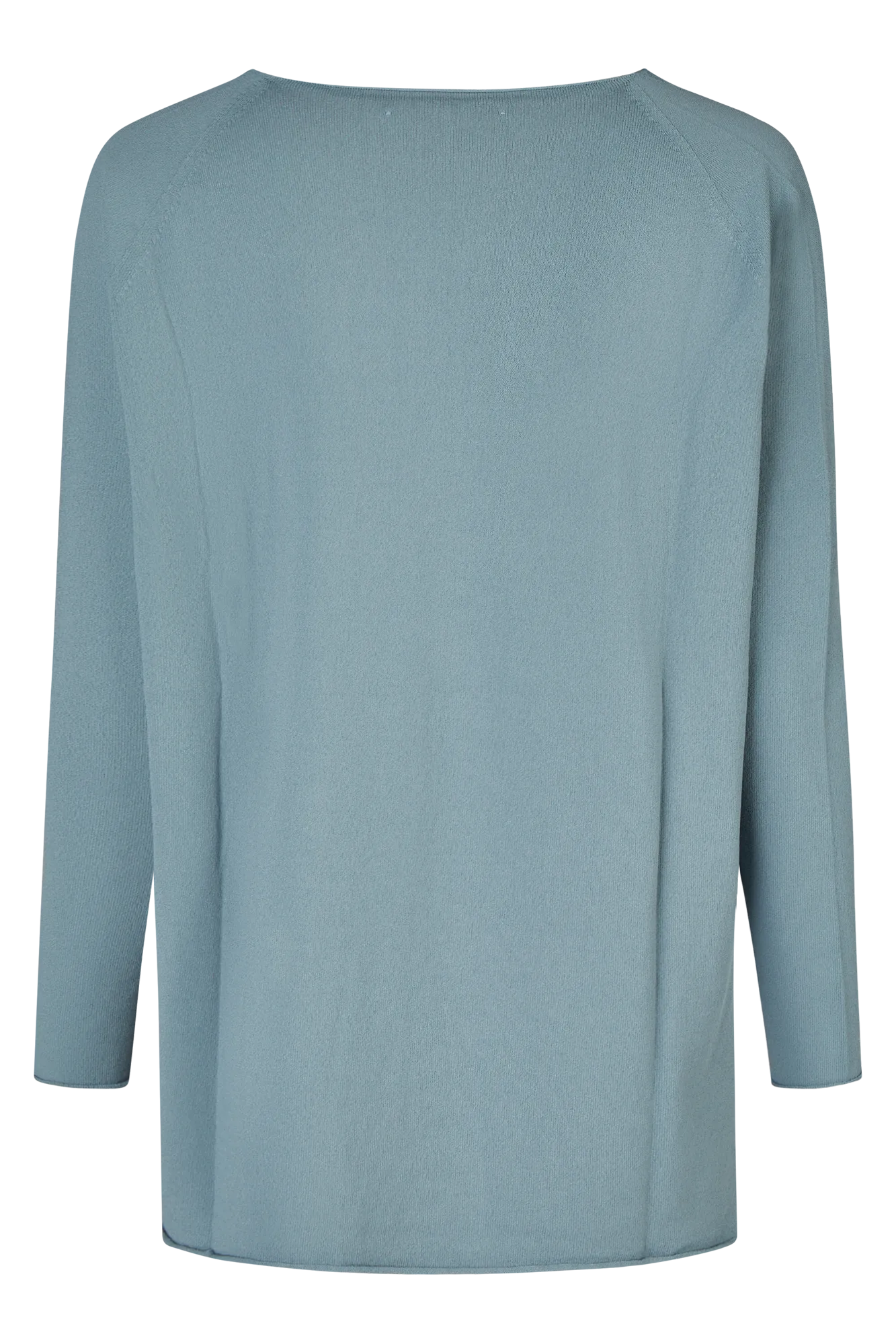 Langer Strickpullover mit geradem, weitem Schnitt und V-Ausschnitt. Die klare Silhouette wird durch seitliche Schlitze und schmale Ärmel ausbalanciert. Die nahtlose Verarbeitung reduziert Verschnitt und sorgt für ein besonders angenehmes Tragegefühl. Der feine Viskosegarn verleiht dem Modell eine glatte, leicht kühlende Oberfläche.