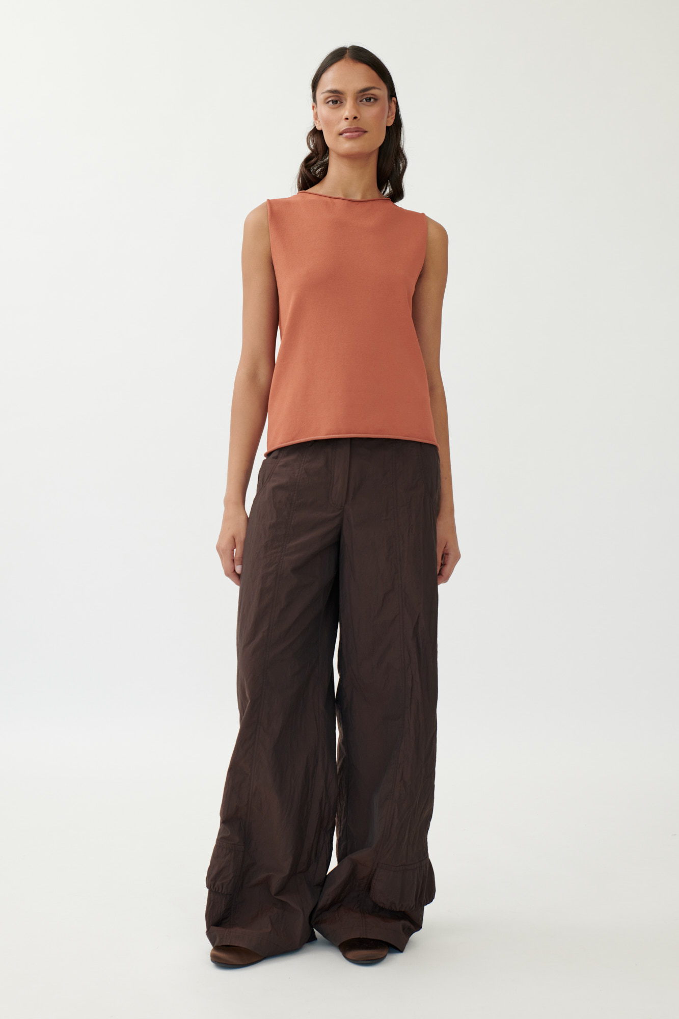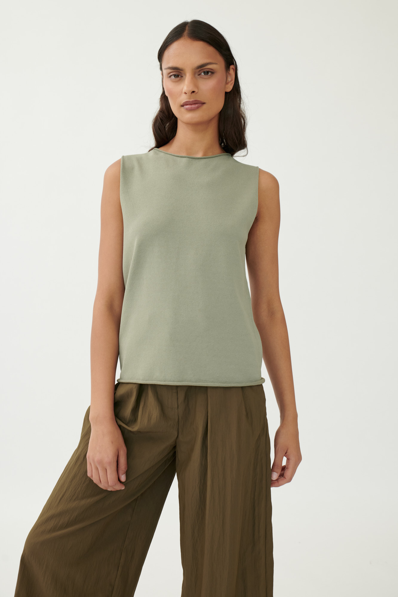 Unser ärmellose Top aus festem Viskosegarn überzeugt mit klarer Linienführung und glatter Oberfläche. Der gerade, leicht taillierte Schnitt und der schmale Rundhalsausschnitt sorgen für eine reduzierte, moderne Silhouette. Durch das nahtlose Strickverfahren wird Verschnitt vermieden und der Tragekomfort optimiert.