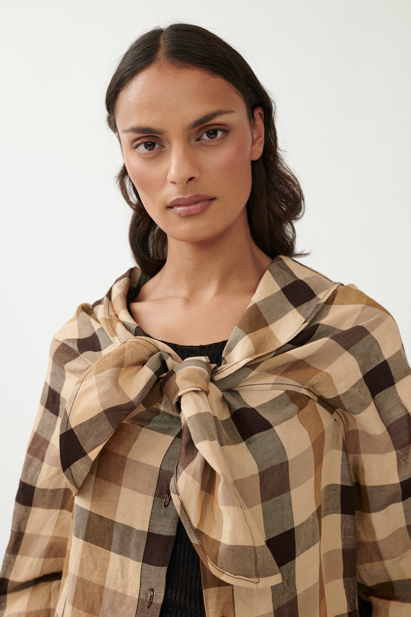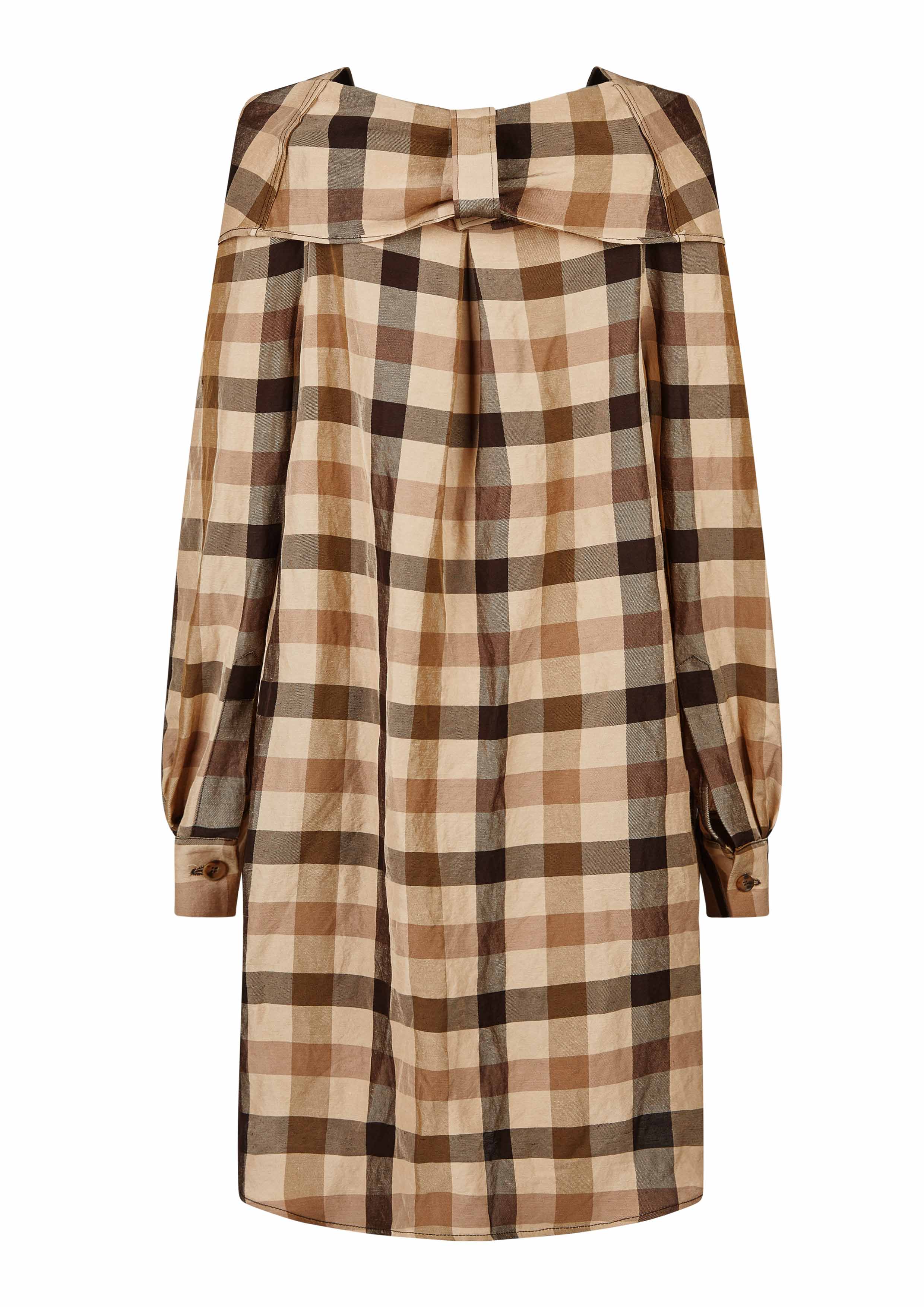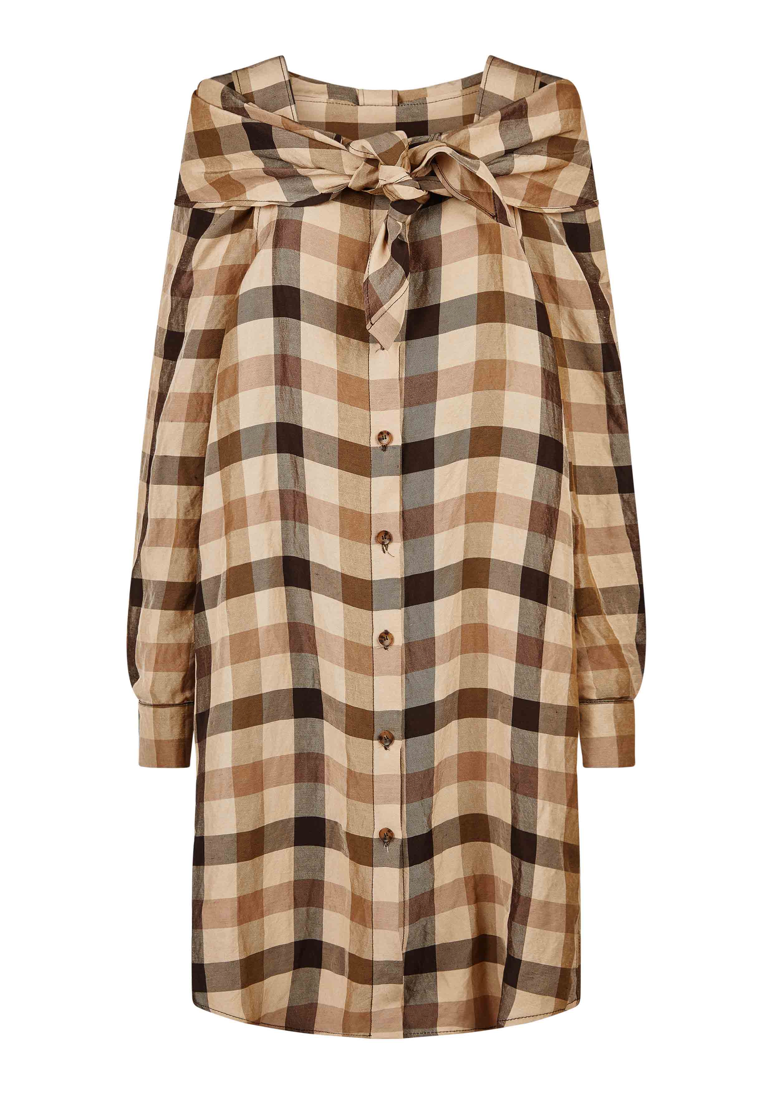Blusenkleid mit geknotetem Kragen aus kariertem Leinen-Viskose-Mix