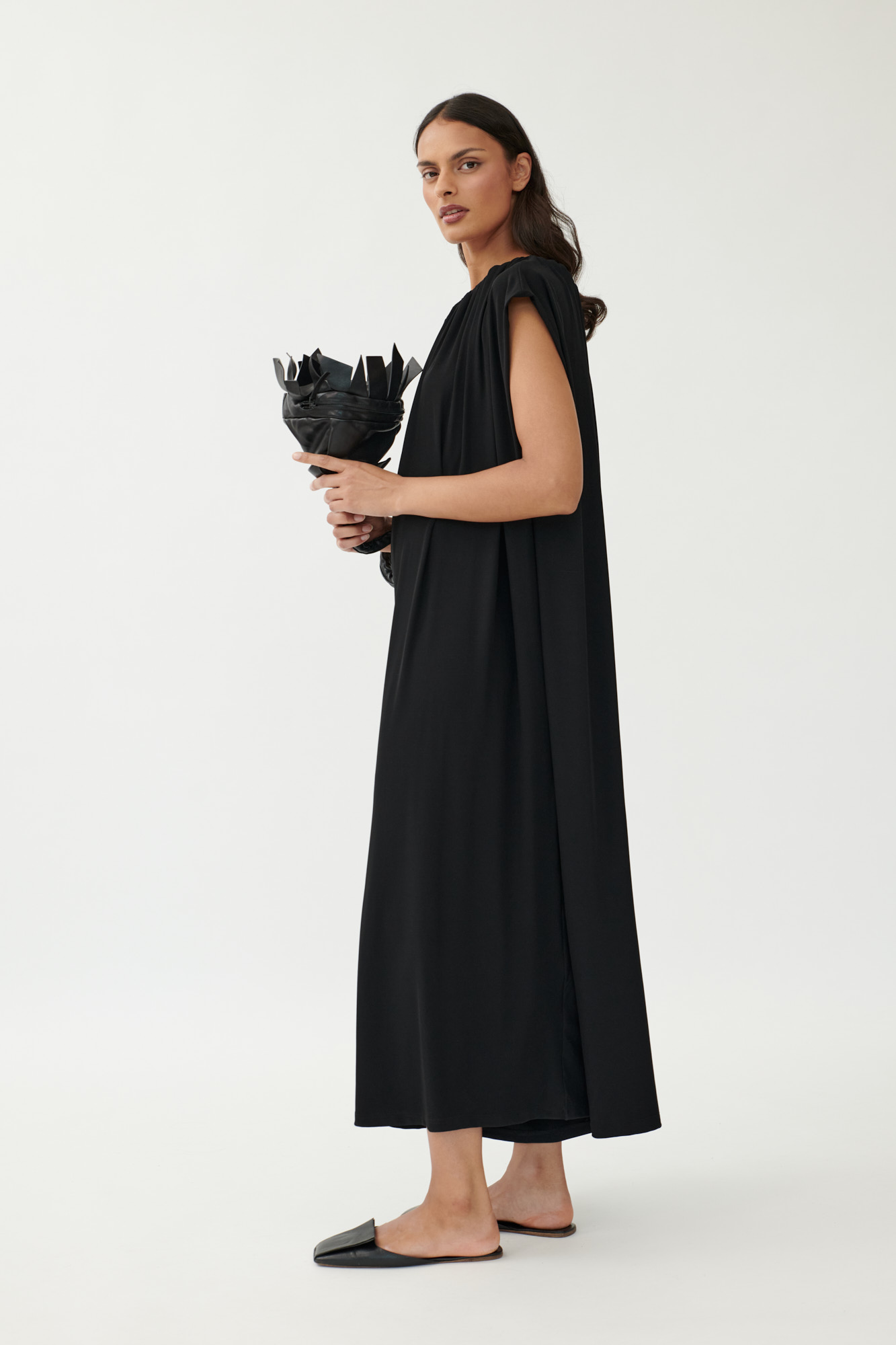 • Weiter Rundhalsausschnitt mit Schlitz und Reißverschluss