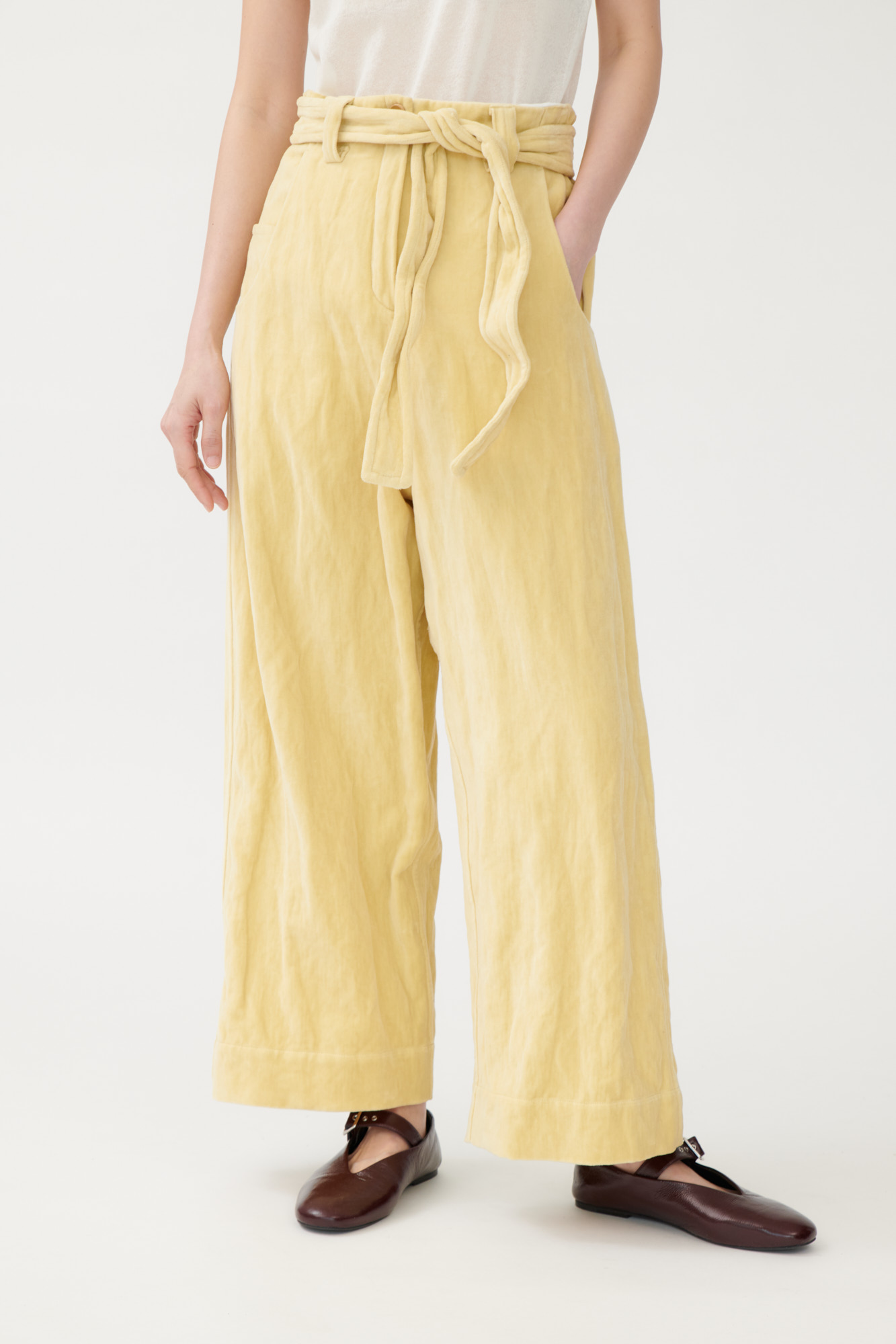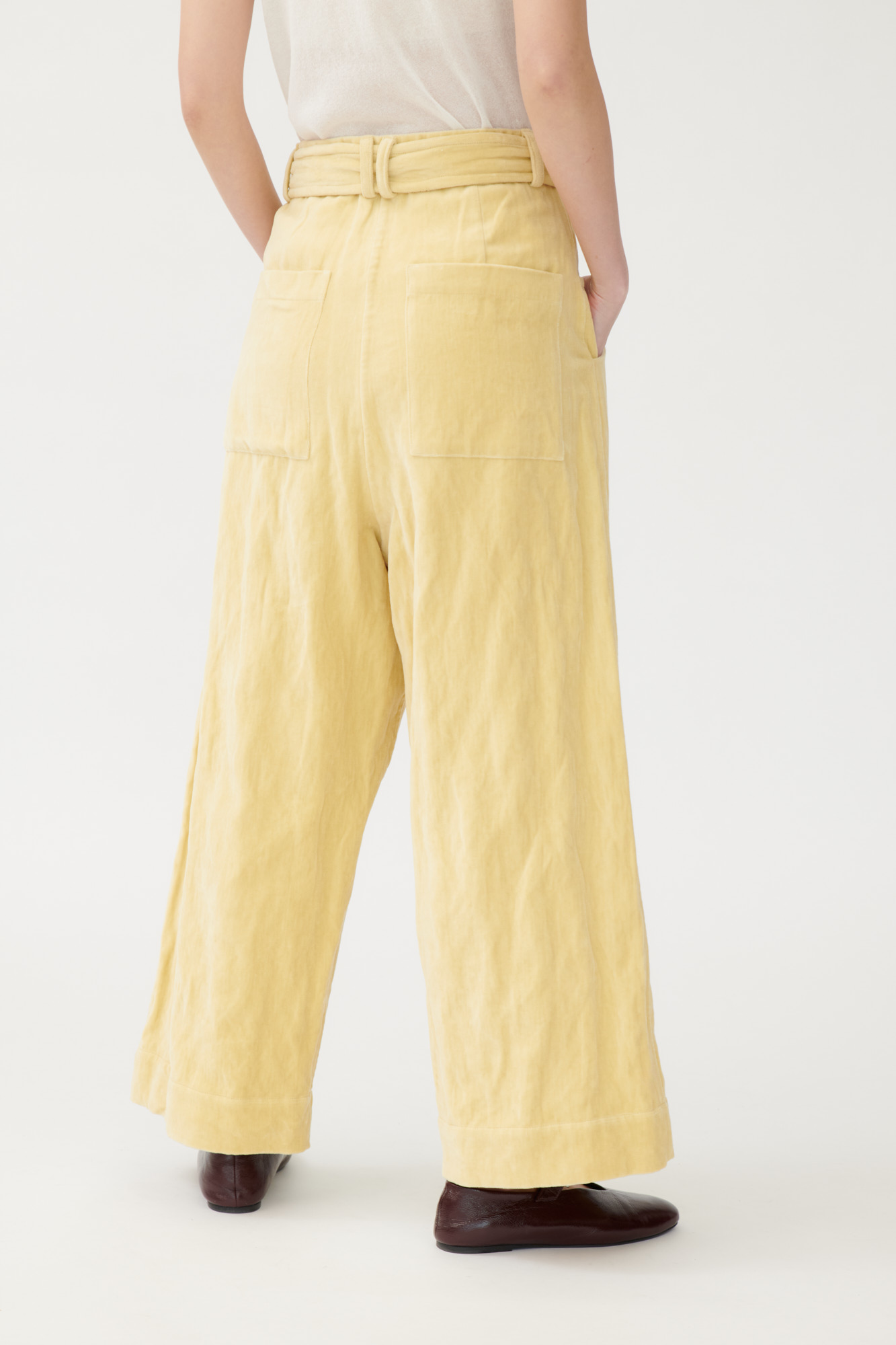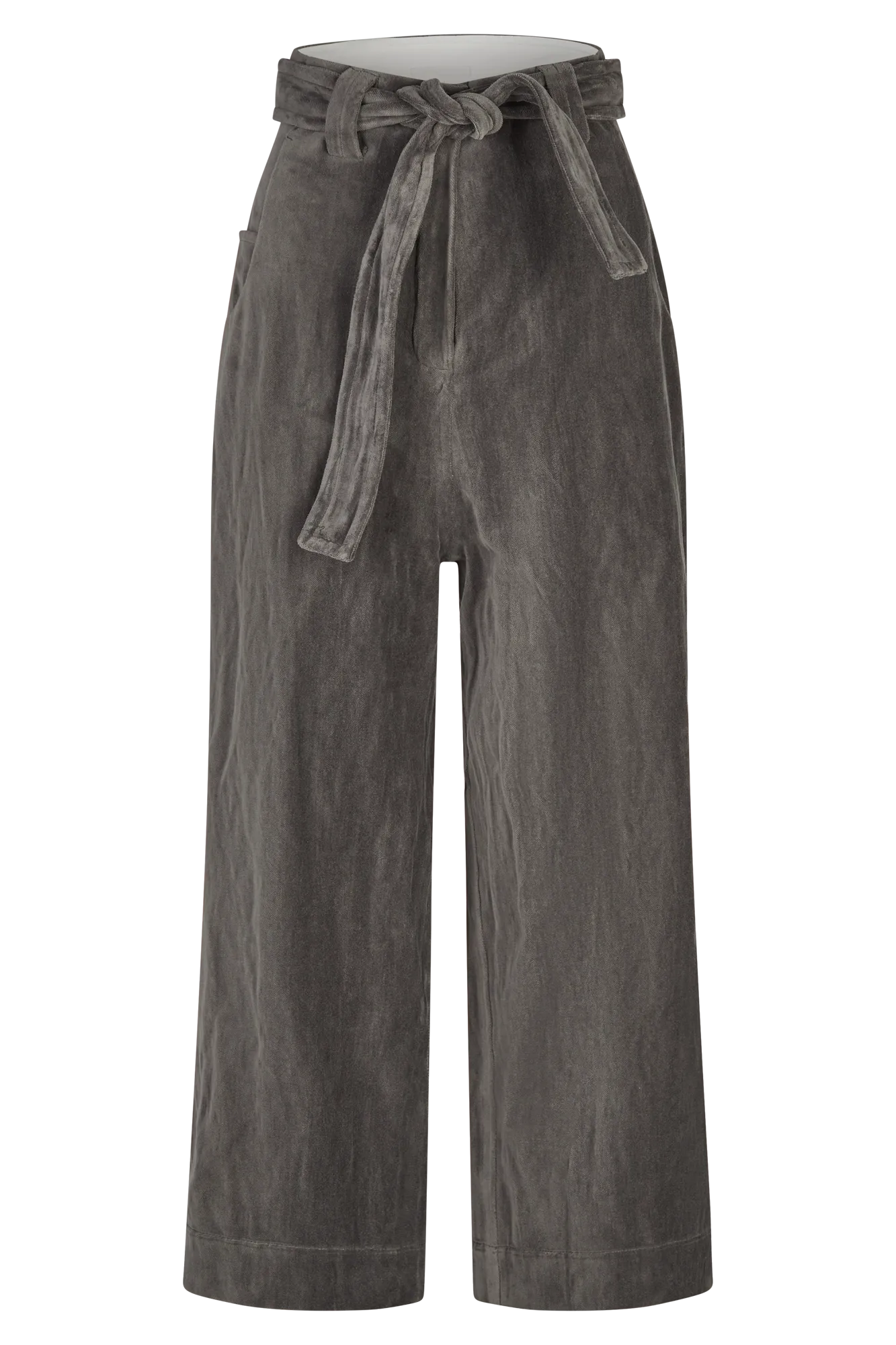 Casual drop-crotch pants made from washed-look velvet.