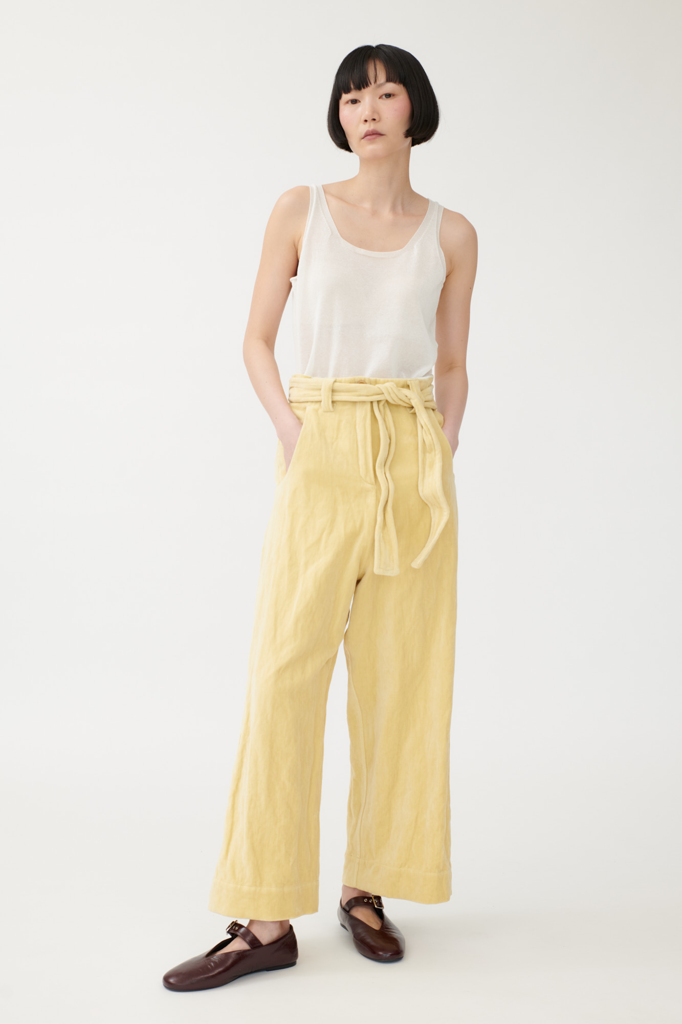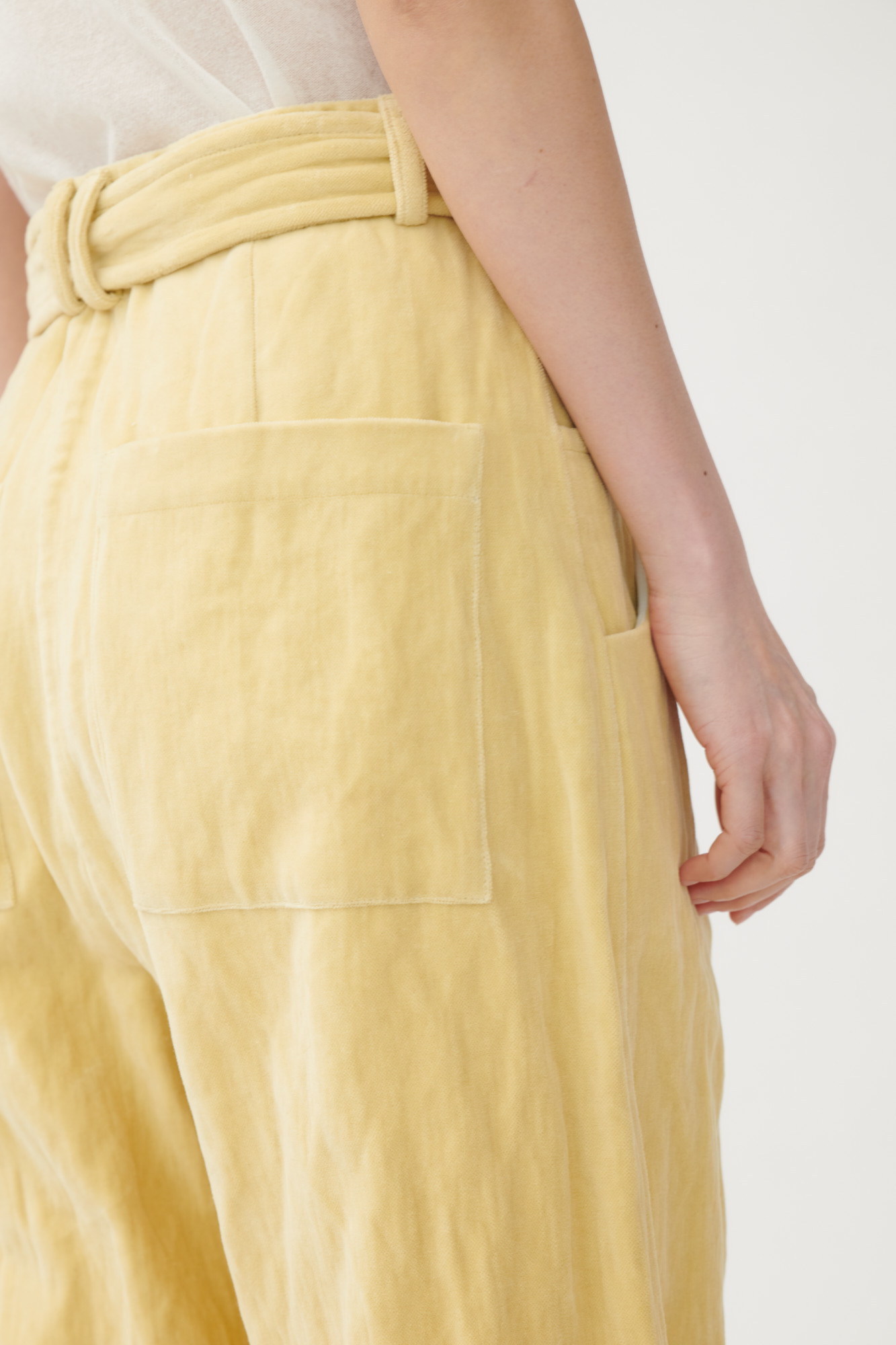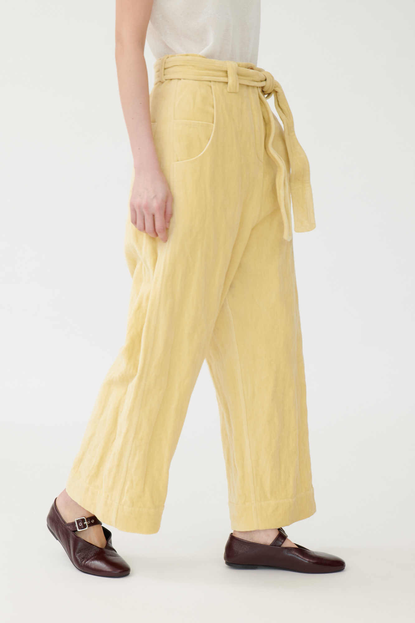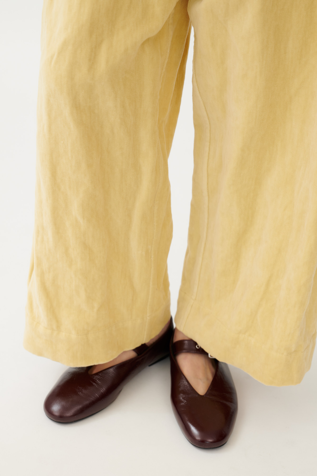Casual drop-crotch pants made from washed-look velvet.