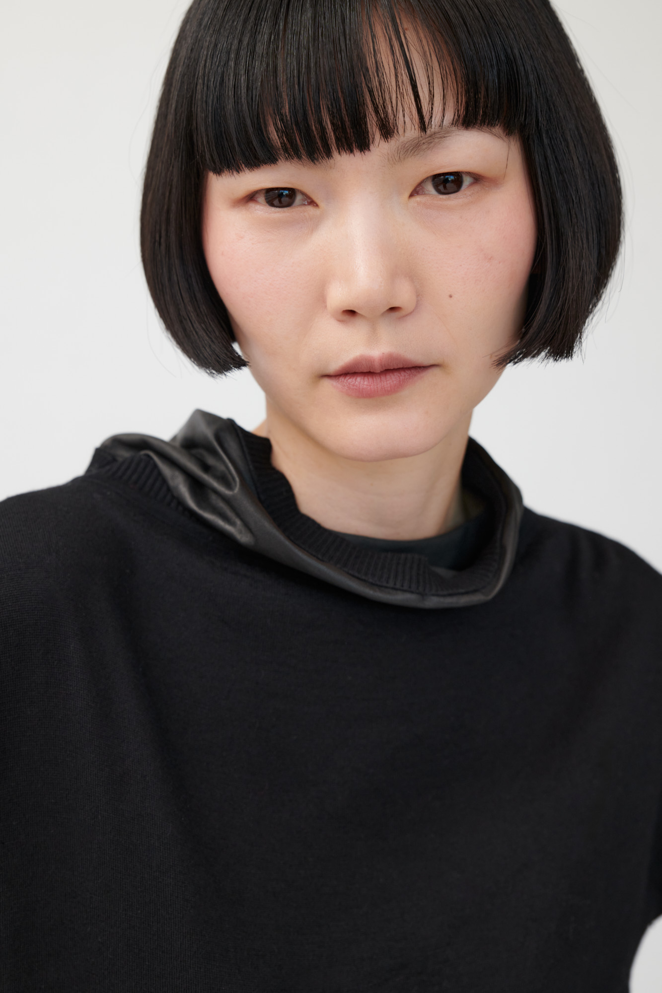 • Wide leather stand-up collar
