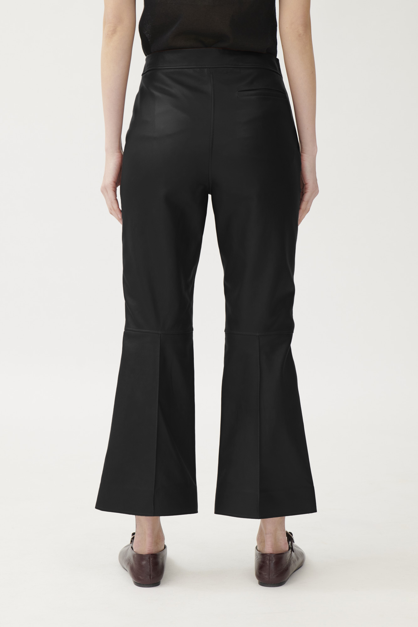 Cropped flared leather trousers