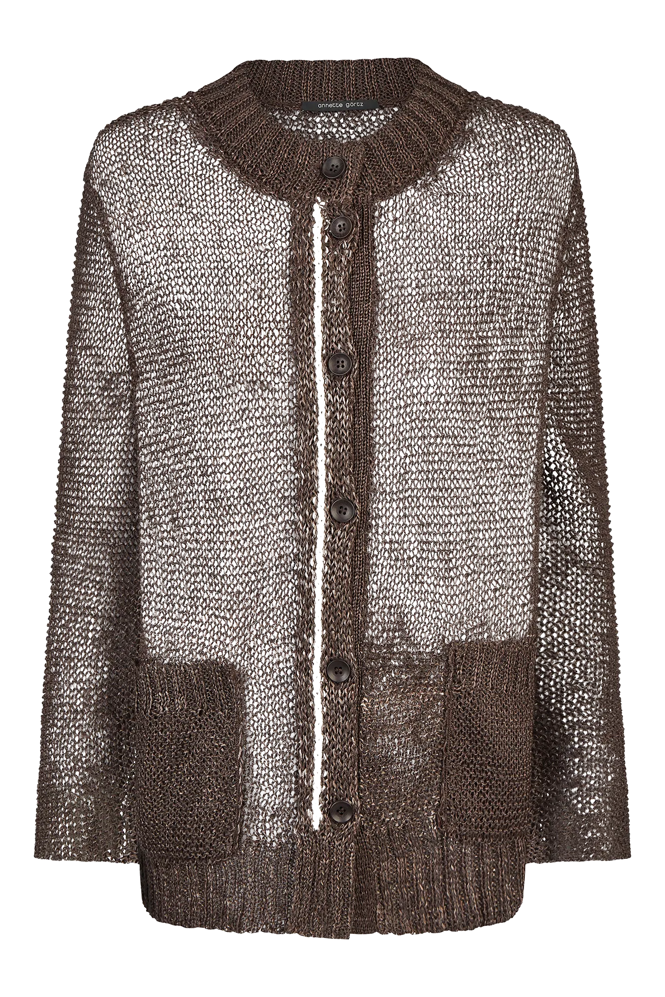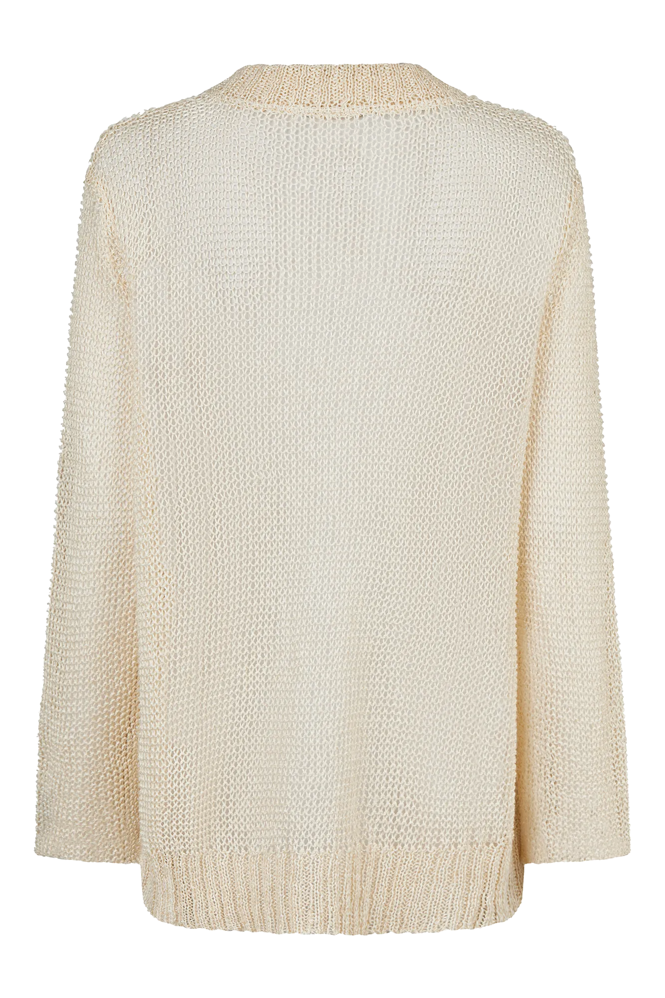 Lightweight and easy. Our sheer, loosely knitted cardigan features a relaxed oversized fit. Ribbed trims at the cuffs and neckline add subtle structure, while the button placket is accented with a contrast thread for a refined touch. Patch-style pockets complete the casual look.